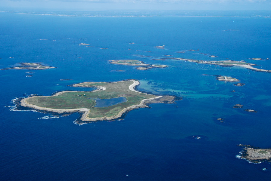 Le vieux Glénan en bas à droite et les autres îles sortant du bleu